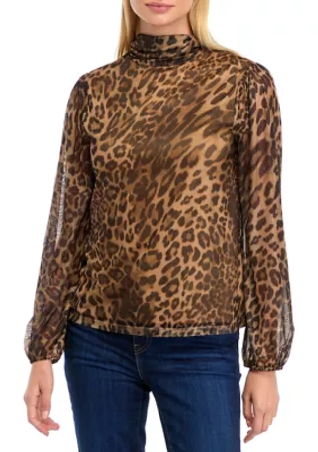 Ella Rafaella Plus Size Mock Neck Snap Cuff Long Sleeve Top
