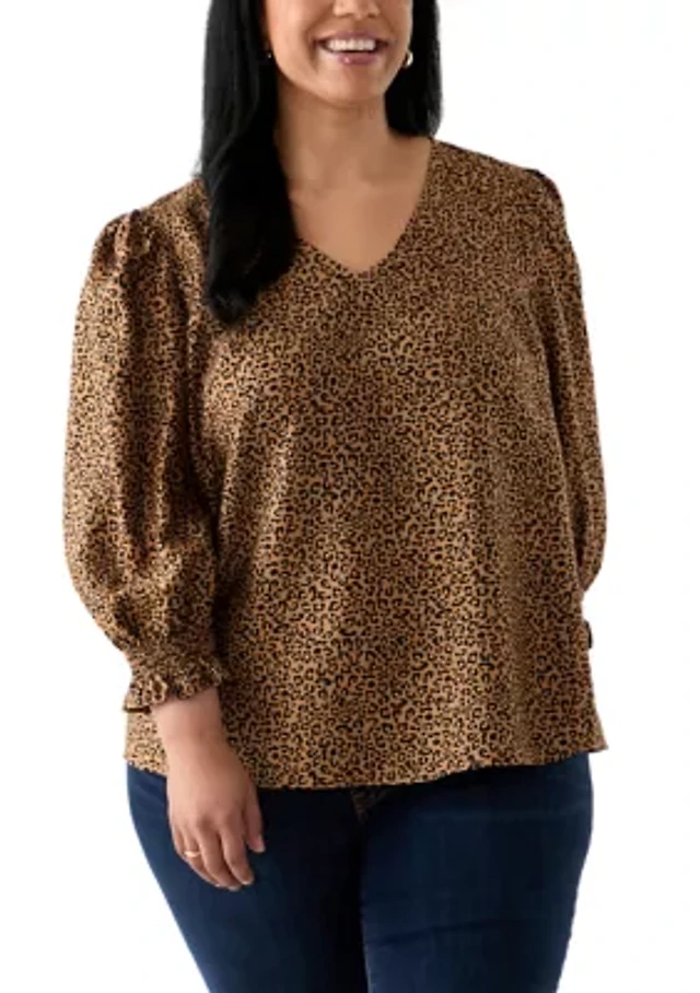 Petite 3/4 Sleeve Dune V-Neck Button Blouse