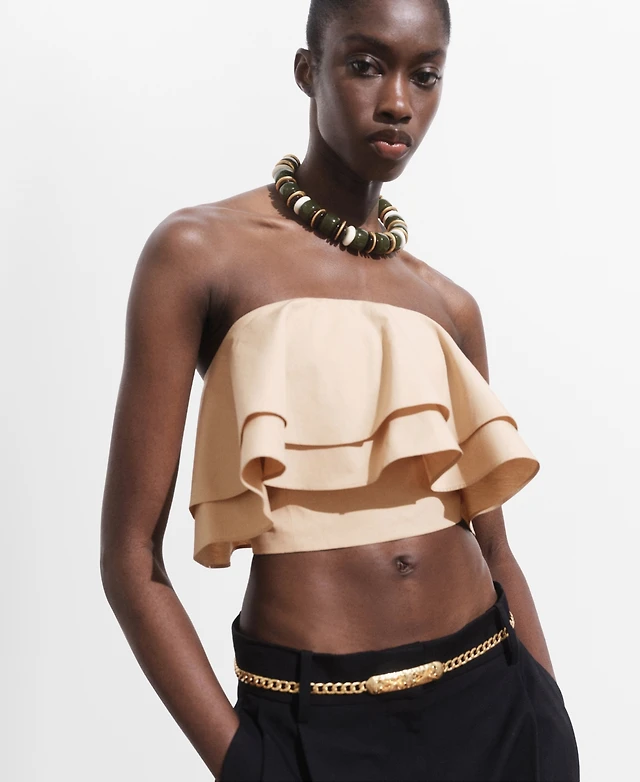 EDIKTED Ruffled Scrunch Linen Look Tube Top - BEIGE