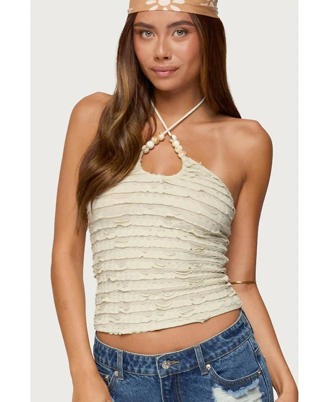 Fashion-szn Curve Women's Crochet Tie Front Resort Top