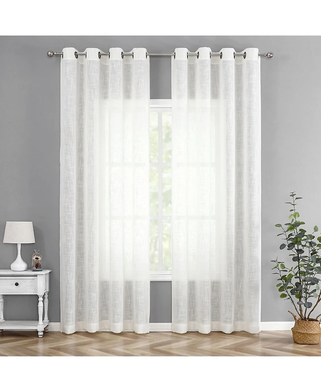 Hlc.me Madison Faux Linen Textured Semi Sheer Privacy Sun Light Filtering Transparent Window Grommet Long Thick Curtains Drapery Panels for Bedroom