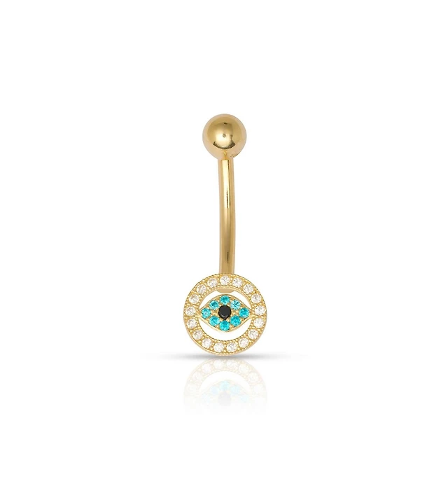 Goldtone CZ Belly Ring - 14 Gauge