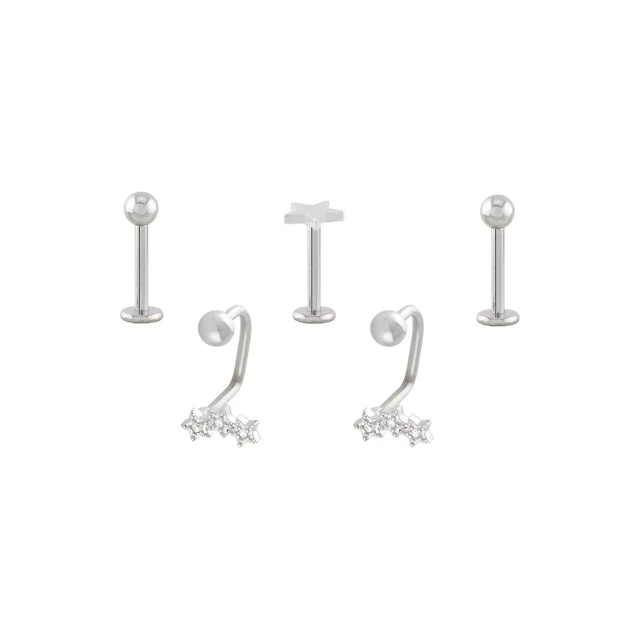 Multi-Pack CZ Star Labret and Lippy Loop Lip Rings 5 Pack - 16 Gauge