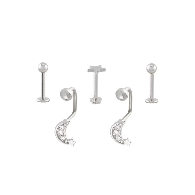 Multi-Pack CZ Star Moon Labret and Lippy Loop Lip Rings 5 Pack - 16 Gauge