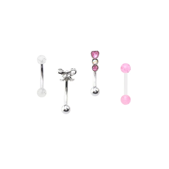 Multi-Pack Pink CZ Heart and Bow Nose Screws 6 Pack - 20 Gauge