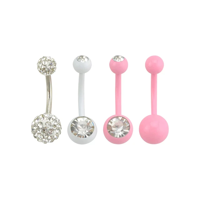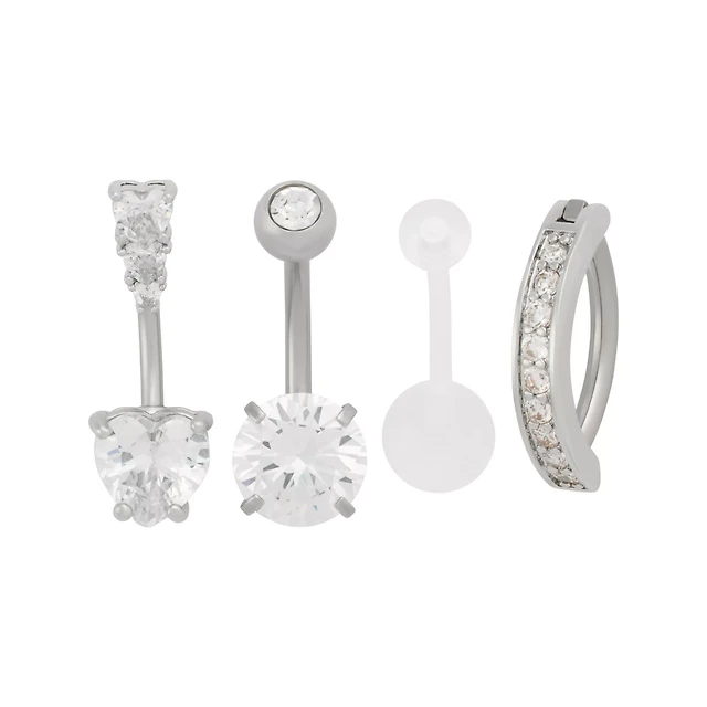 Multi-Pack CZ Heart and Bar Belly Rings 4 Pack - 14 Gauge