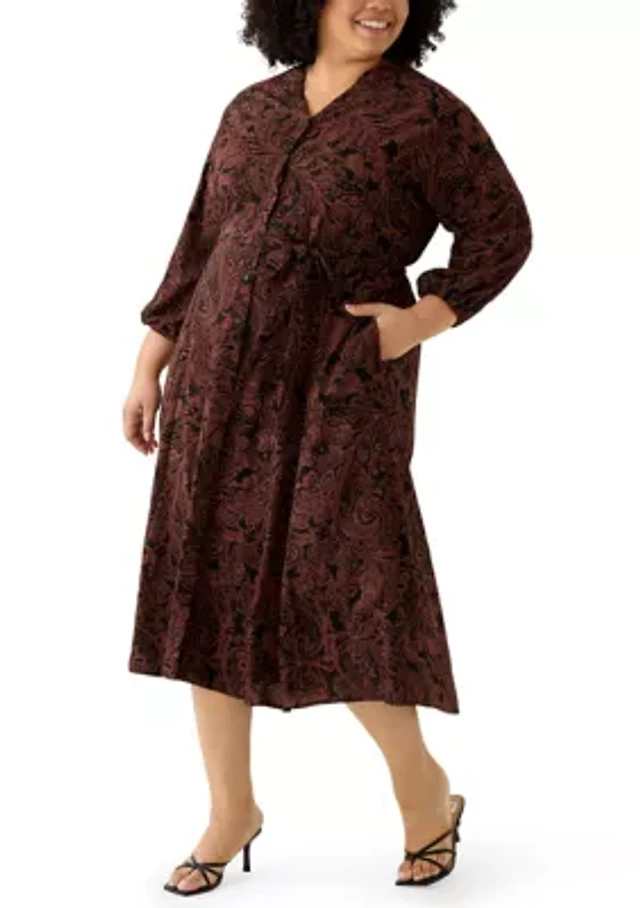 Karl Lagerfeld Paris Women's Lace Print Collared Shirt Dress