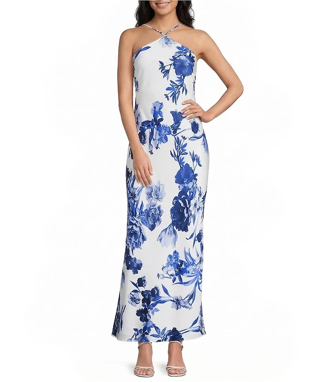 Kasper Printed Satin Cowl Neck Seamed Flare Dress
