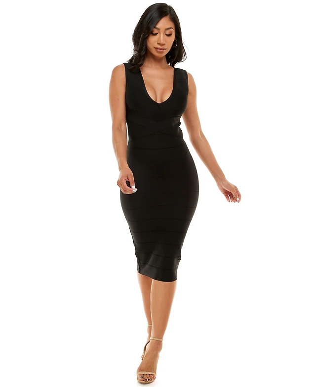 Sl Fashions Plus V-Neck Midi Dress