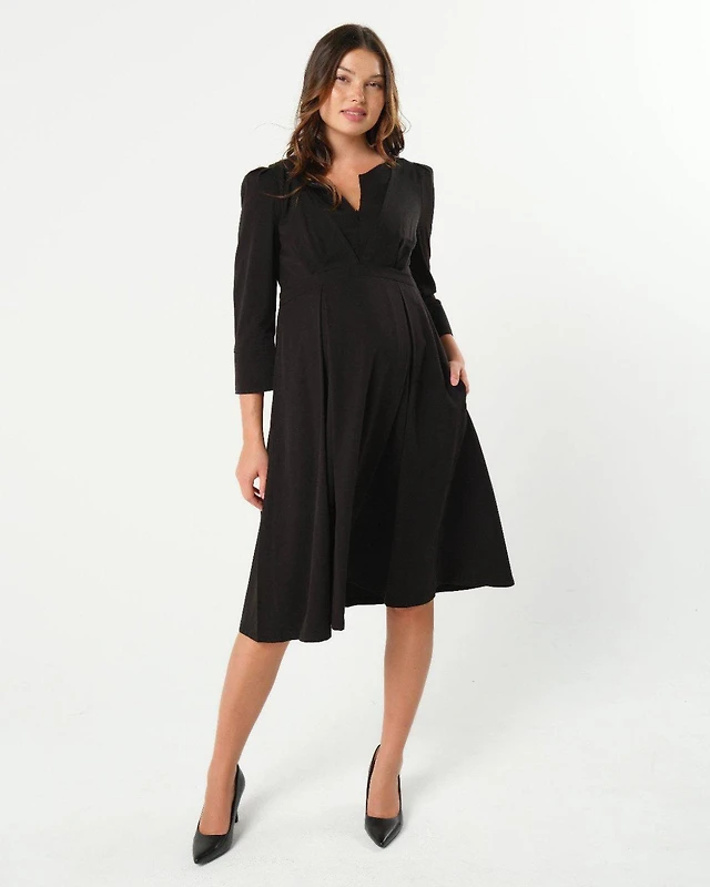 Pinkblush Maternity Plum Front Tie Ruffle Sleeve Midi Dress