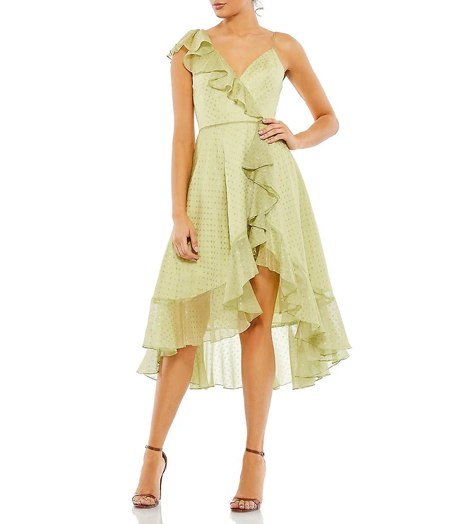 Mac Duggal Scoop Neck Sleeveless Micro Ruffle Mesh Aline Midi Dress