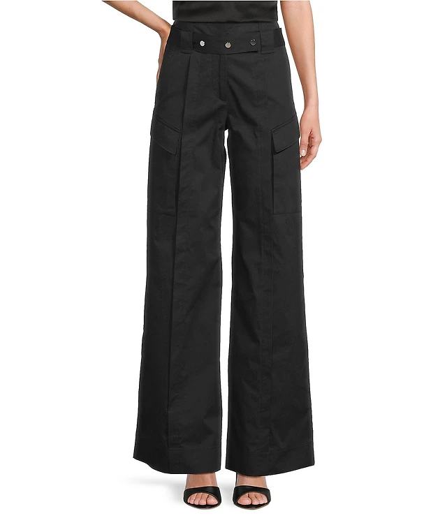 Le' AL.X Woven Crepe High Rise Pleated Front Cargo Suit Wide Leg Coordinating Pants
