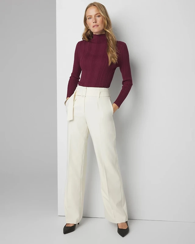 Kasper Petite High Rise Pull On Boot Leg Pant With Belt