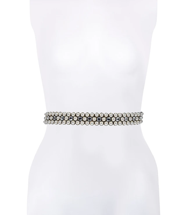 Ann Taylor Leather Studded Belt Pearl Shadow Women's