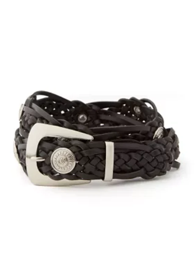 Sam Edelman Women's Woven Leather Belt with Circular Center Bar Buckle