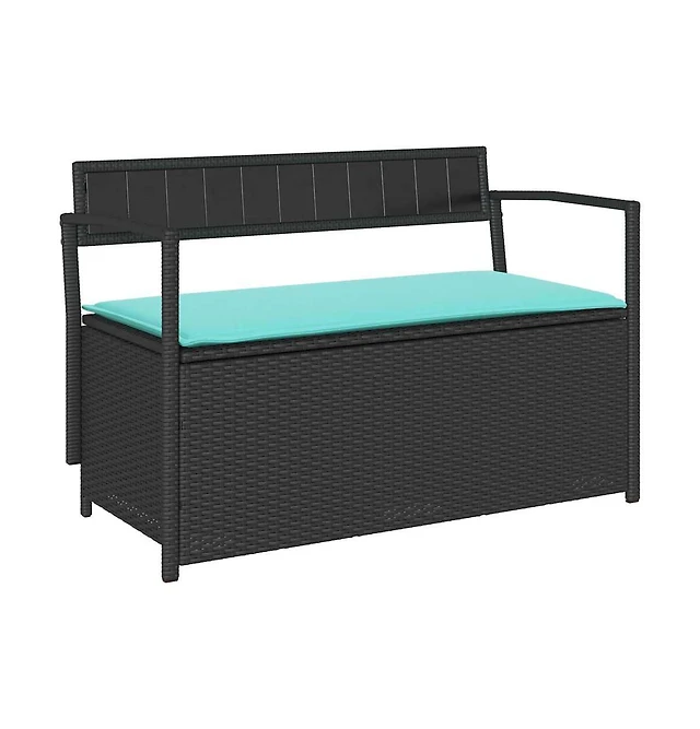 vidaXL Patio Storage Bench with Cushion Black Poly Rattan