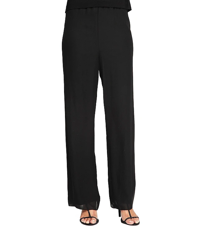 Calessa Plus Size Textured Knit Wide Leg Pull-On Ankle Pants