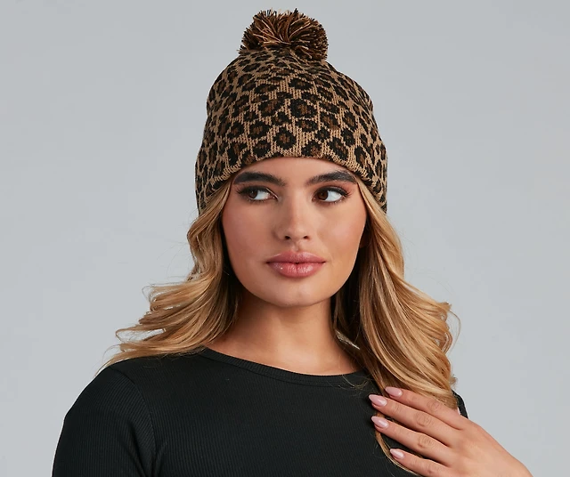 Leopard Print Pom Pom Beanie