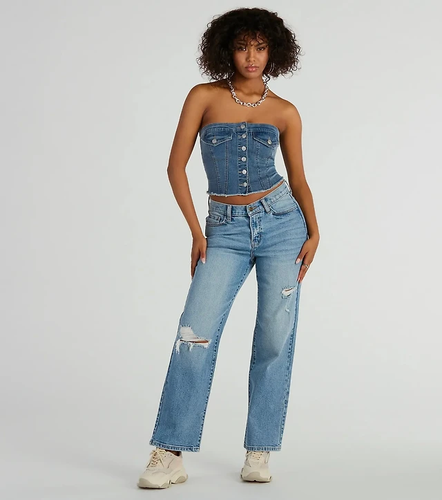 Democracy Petite Skyrise Straight-Leg Step Hem Jeans