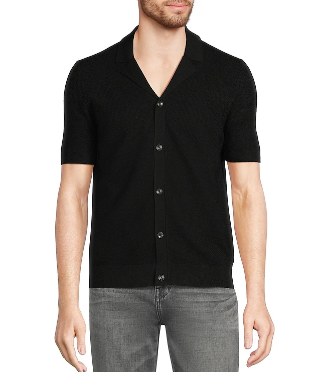 Polo Ralph Lauren Textured Linen Blend Johnny Collar Short Sleeve Sweater