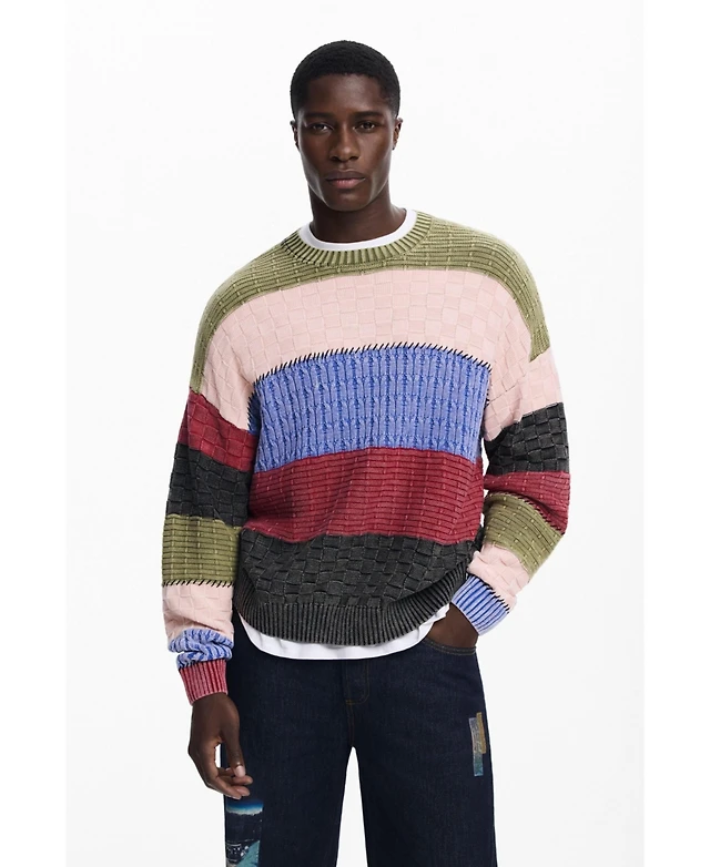 Men's Wipped Relaxed-Fit Textured-Knit Sweater