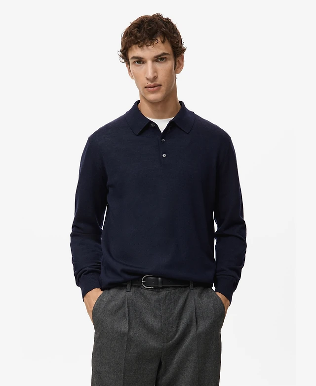 Mango Men's Regular-Fit Knitted Polo Sweater