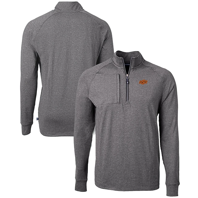 Men's Cutter & Buck Gray/White Oklahoma State Cowboys Big & Tall Virtue Eco Pique Micro Stripe Recycled Quarter-Zip Pullover Top