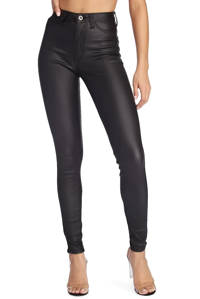 Code Bleu Petite Size Chelsea Stretch Coated Straight Leg Jeans