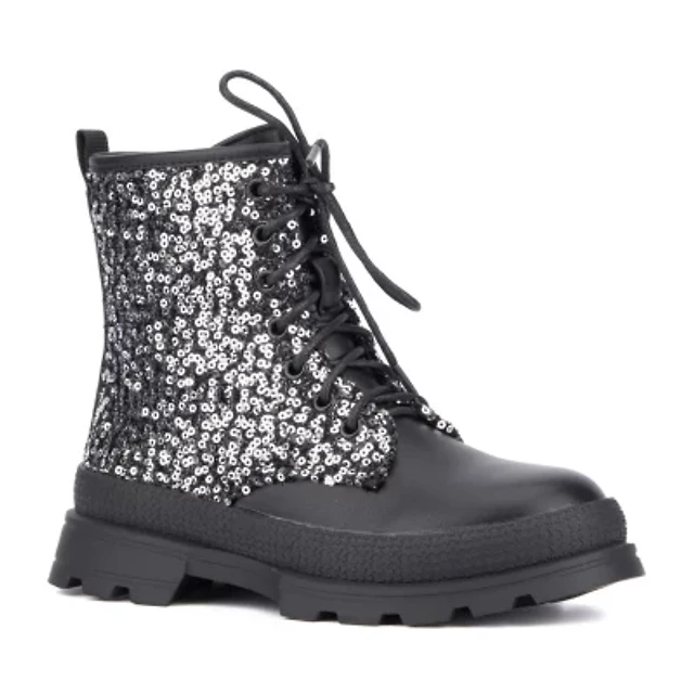 L'Artiste Women's Rugup Hand-Painted Leather Booties with Mixed Textures, Decorative Studs, Lace-Up and Zipper Closure, Faux Fur Lining, Lug Sole