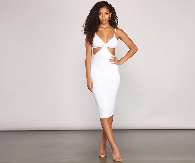 Sassy Snaps Ribbed Midi Dress