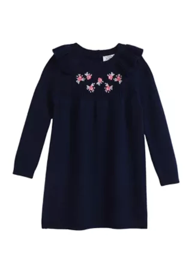 Hope & Henry Toddler Girls Organic Embroidered Skater Sweater Dress with Bow