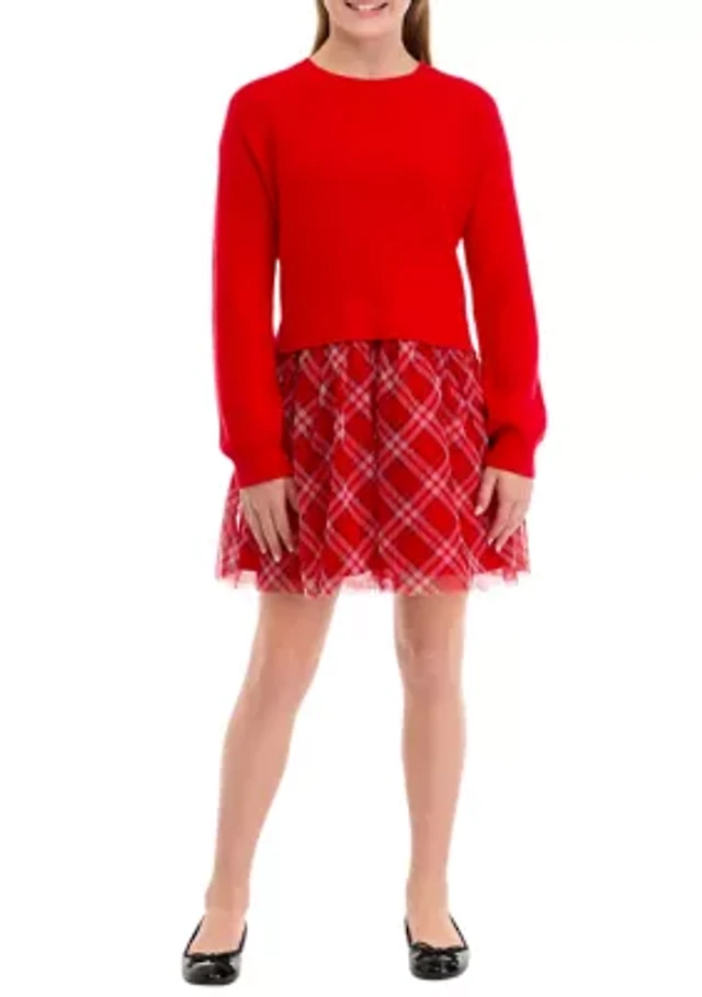 Toddler Girls Printed Sweater Knit Tulle Dress
