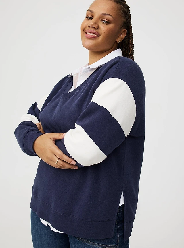Petite Long Sleeve Crew Neck Sweater with Trim