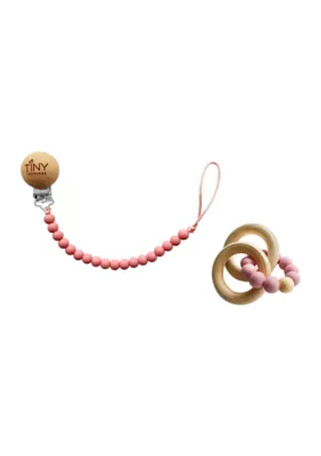 Tendertyme Baby Girls Pacifier Keeper and Bunny Plush, 2 Piece Set