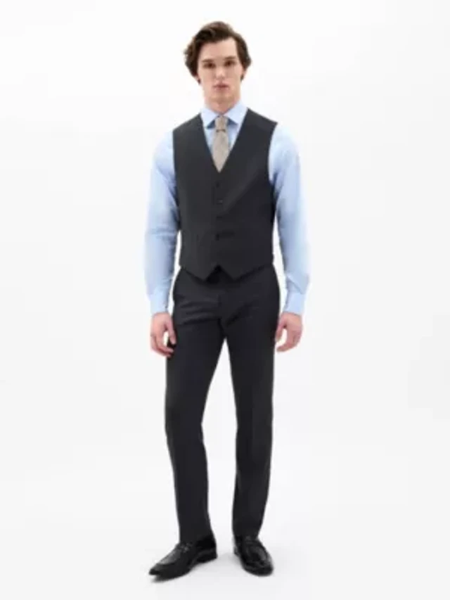 Charcoal Twill Regular Vests