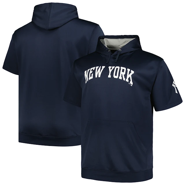 Men's Profile Navy New York Yankees Big & Tall Contrast Short Sleeve Pullover Hoodie