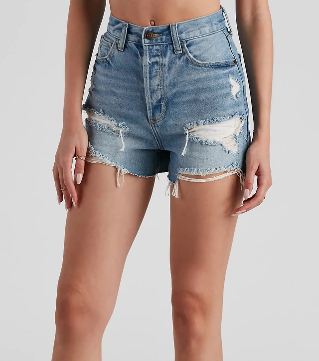 Nothing Short Of Glam Rhinestone Lace-Up Denim Shorts