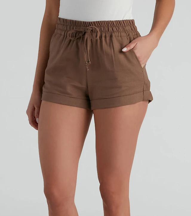 Copper Key Stripe Printed Linen Blend Coordinating Shorts