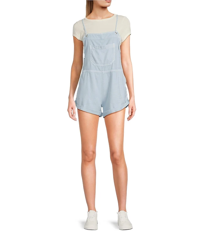 Billabong Big Girls Sleeveless Wave Watch Jr Striped Lightweight Denim Romper