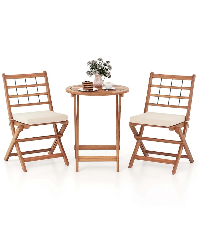 3pcs Patio Acacia Wood Bistro Conversation Cushioned Chair & Table Set Outdoor