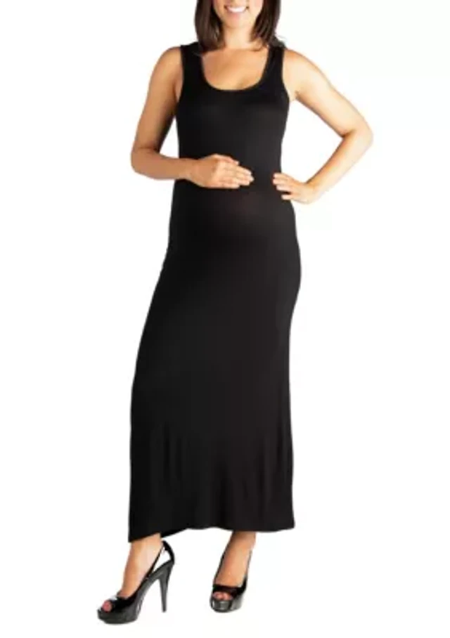 V Neck Sleeveless Maternity Maxi Dress with Belt