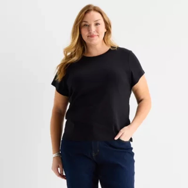Xersion Womens Cotton Crew Neck Short Sleeve T-Shirt Plus