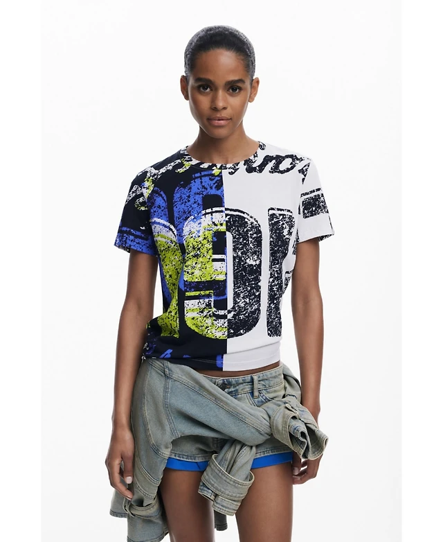 Paddy Animal Cropped Tee Womens Juniors Crew Neck Short Sleeve Regular Fit Care Bears Graphic T-Shirt