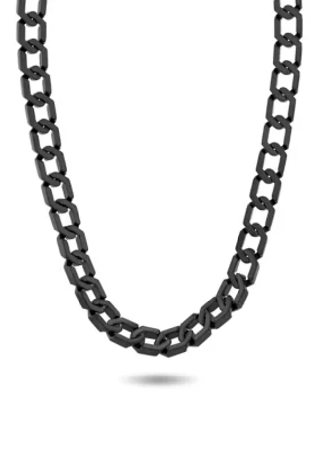 Matte Black Ion-Plated Stainless Steel mm Cuban Chain Necklace