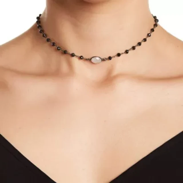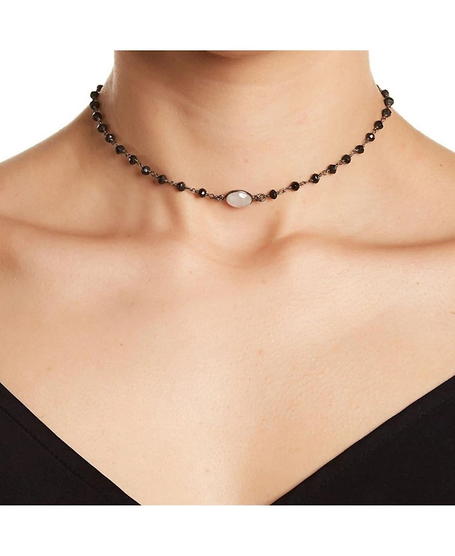 Adornia Fine Rosary Choker Necklace moonstone black spinel silver