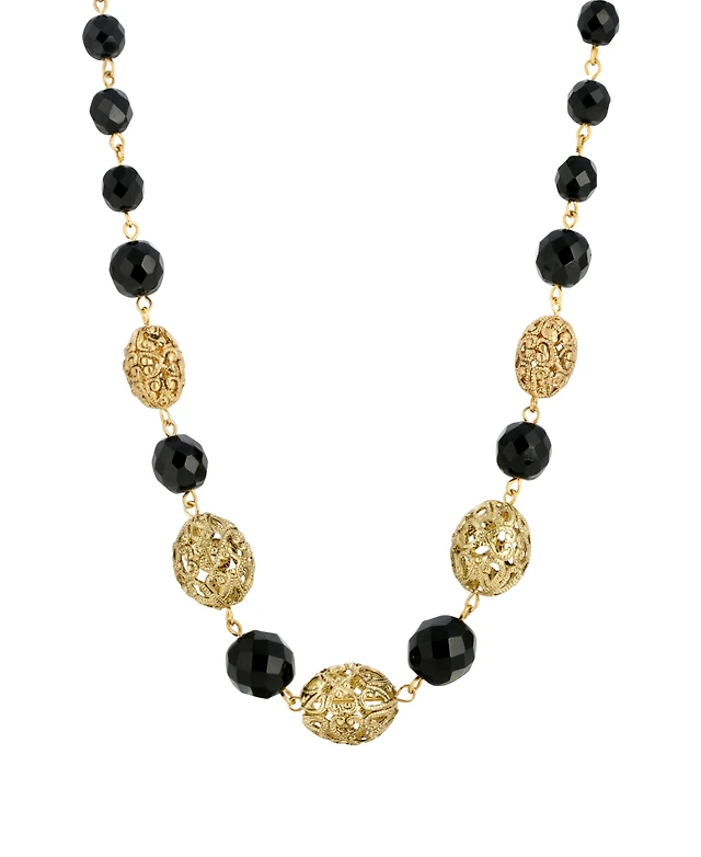 Genuine Black Onyx Goldtone Necklace and Earring Set