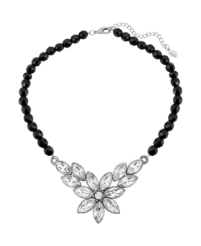 Black Spinel Rondelle Bead Statement Necklace (58-1/8 ct. t.w.) in Sterling Silver, 16" + 2" extender