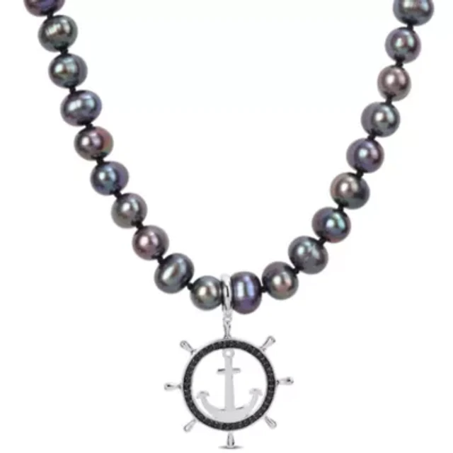 Men's Onyx (24 x 15-1/2mm) & Diamond (1/4 ct. t.w.) 22" Pendant Necklace in Sterling Silver