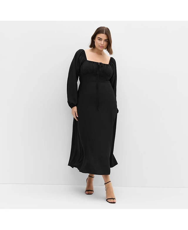 Modenaire Women's Belted Puff Sleeve Midi Dress