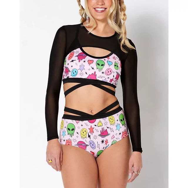 Cosmic Aura Black Cross Ruched Girls Crop Top Plus Size
